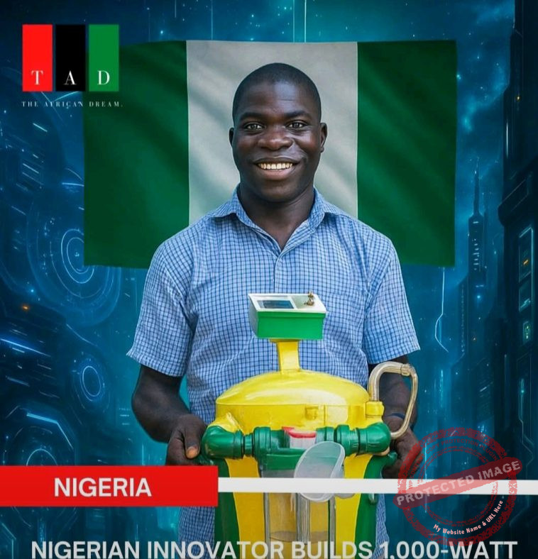 Standing proudly in front of the Nigerian flag and holding his invention in a viral photo posted by The African Dream, Nelson embodies the spirit of grassroots innovation and resilience. According to sources, the generator could provide electricity for small appliances, lighting, and essential devices in homes and small businesses — a much-needed solution in rural and underserved communities.