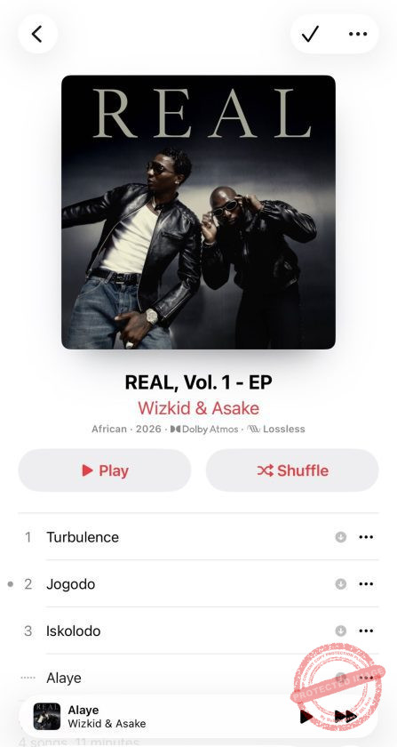 Nigerian superstars Wizkid and Asake have ignited the music scene after their surprise joint project, “REAL, Vol. 1,” rocketed to No. 1 on Nigeria’s Apple Music chart within hours of release.